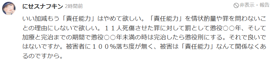 - 責任能力での減刑はうんざり