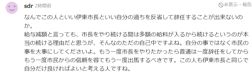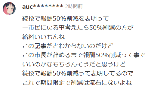ですから、小川晶市長の報酬50%削減による市長続行は