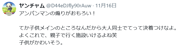 横浜のアンパンマンミュージアムで、父親同士が喧嘩をするという事態が発生しました。