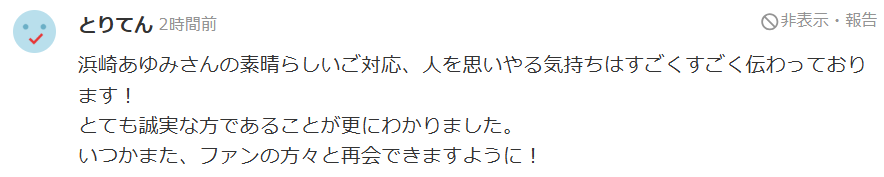 ただただ、浜崎あゆみのステージの為に尽力して下さった約100名にも及ぶ中国スタッフ、日本から共に海を渡って来た同じく100名に及ぶスタッフ、ダンサー、バンドメンバーに本番を演らせてあげられなかったことが申し訳なく
