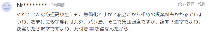 バリ島万引きの生徒ですが、修学旅行で「バリ島」に行く高校ですから