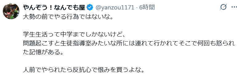 - 大勢の前でやる行為ではない