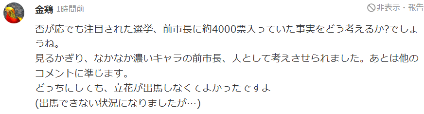 当選を果たしたのは無所属新人で元市議の杉本憲也(すぎもと かずや)さんです。