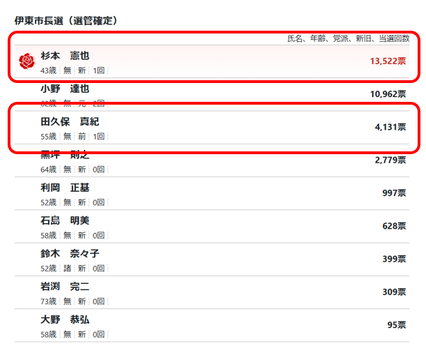田久保真紀前市長が学歴を巡る問題で失職したことで、12月14日に投開票された静岡県伊東市長選。