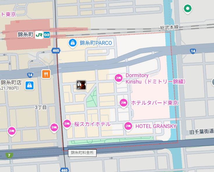 JR錦糸町駅からかなり近い範囲であることがわかります。