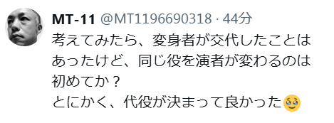 代役はどうなるのか?と様々な憶測があがっていた中で、スーパー戦隊シリーズ「暴太郎戦隊ドンブラザーズ」への出演経験もある