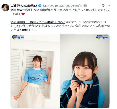 - 娘が影山優佳という噂はデマ