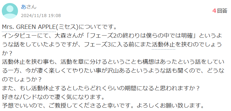 まさかとは思いますが、ミセスグリーンアップルが活動休止した場合
