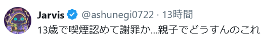 備考 : 娘(13歳)の喫煙を認め謝罪 https://t.co/3fuXNMyPie pic.twitter.com/gDO9hSWY9g