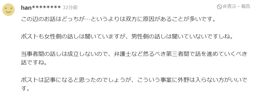 などと、双方に問題がある可能性を示唆するコメントもあるようです。