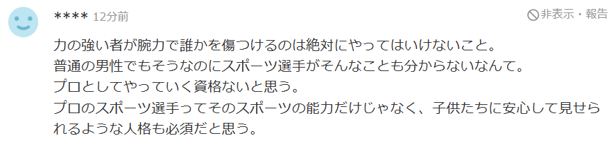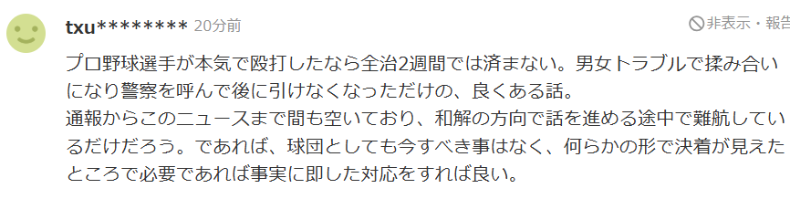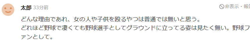 やはり、プロ野球選手の腕力で女性を殴打するという行為は、許されるものではないのかもしれません。