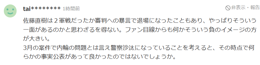 一見すると佐藤直樹選手に過失があるように感じますが、双方被害届を提出する状態となっているようです。