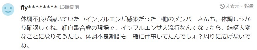 - インフルエンザで紅白歌合戦を辞退