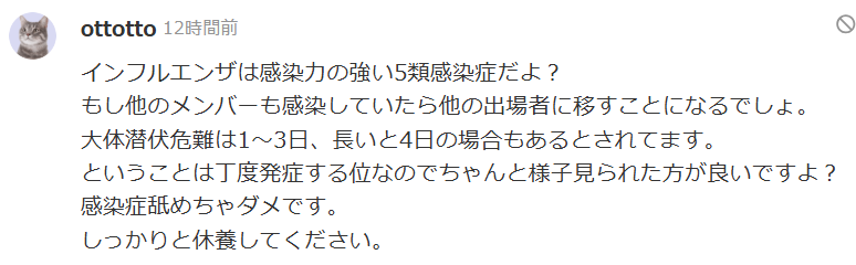 このタイミングでのインフルエンザ感染に、世間からは