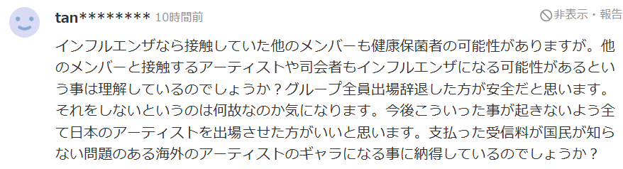 ニンニンさんがインフルエンザ感染により紅白歌合戦の出場を辞退しましたが、世間からは