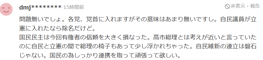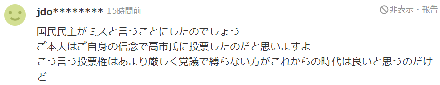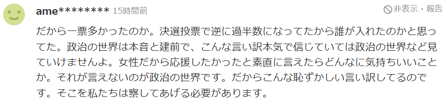 - ご本人はご自身の信念で高市氏に投票したと思う