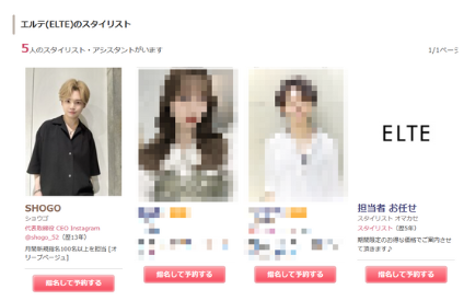 「ELTEエルテ 表参道」はスタイリストが5人のようなので